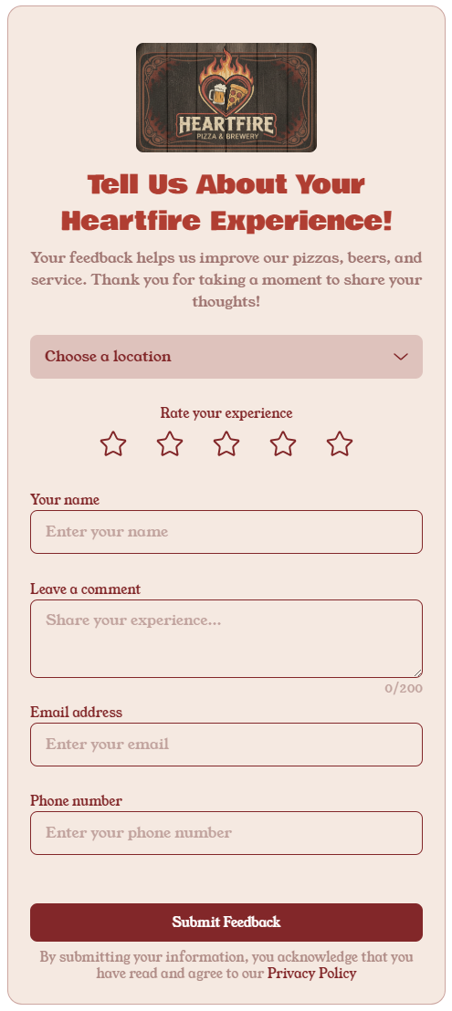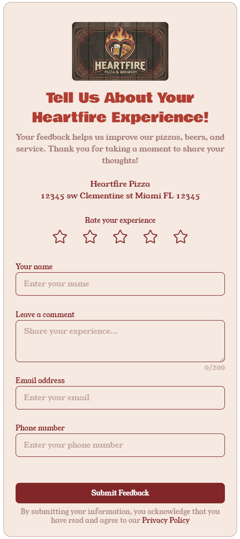 Below are examples of what the customer will see before leaving a review. Whether they access the form via a website link, QR Code, or embed code, the review experience will look the same.