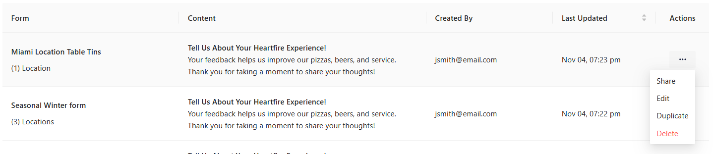 - Duplicate - this will allow you to duplicate your form. This helps in cases where you would like to create a similar form without having to start from scratch.