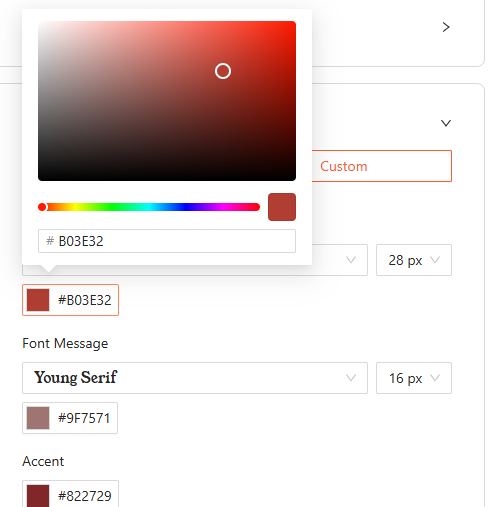 Note: This option is available for the Font Title, Font Message, and Accent, Button Text, and Background.