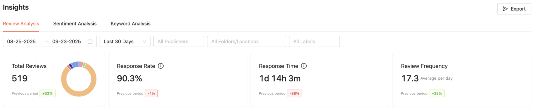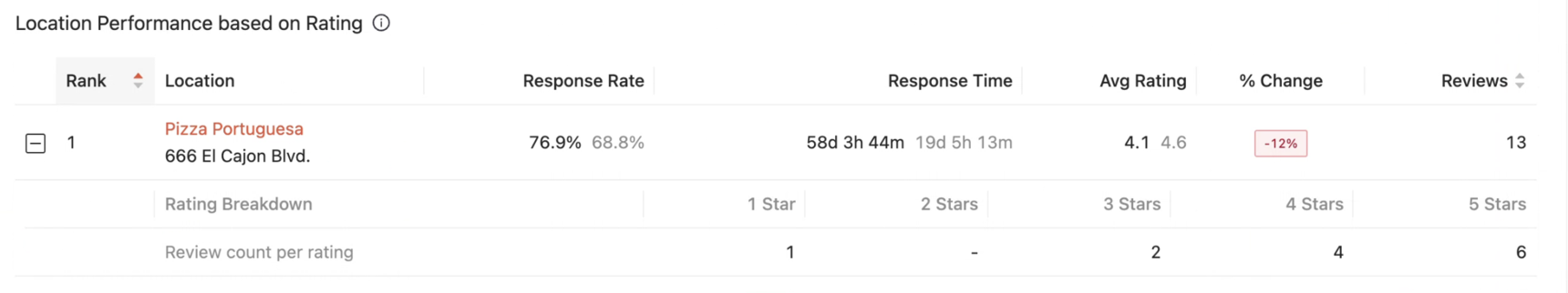 These metrics help you track review activity, measure responsiveness, and identify rating trends across all your locations.