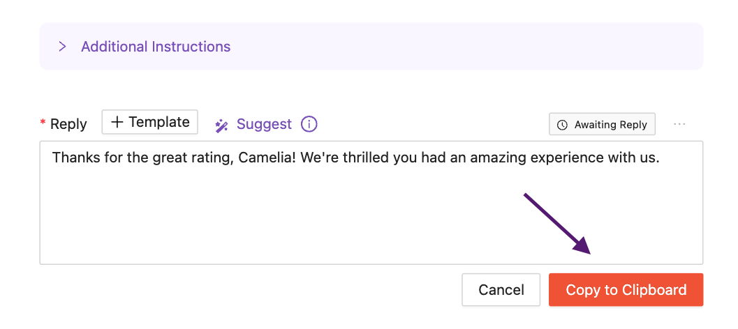Click Awaiting Reply on the review you want to create a suggested response to.