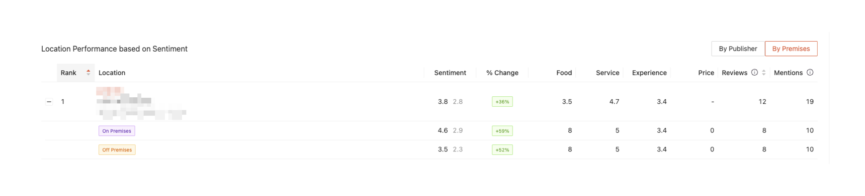 On-Premises vs. Off-Premises - Compare sentiment across in-location experiences and off-premises services.